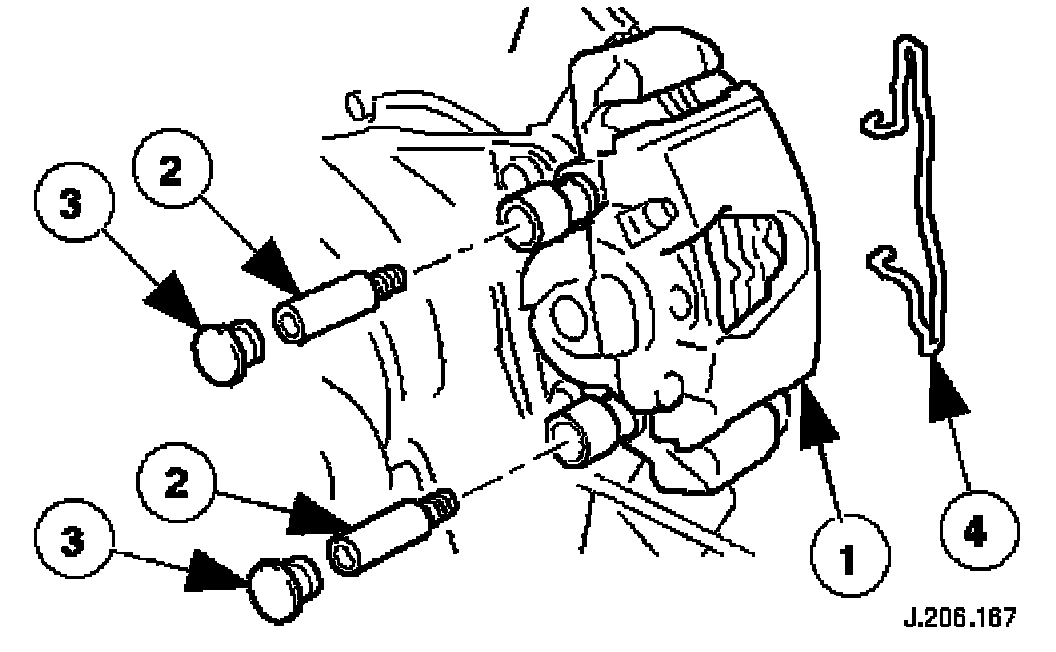 10. NOTE: The inner brake pad is fitted with a clip which secures the pad into the caliper piston.