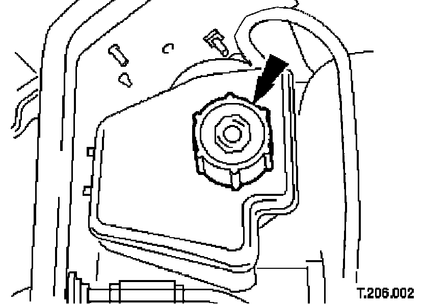 ^ Position a cloth around the reservoir to collect any fluid spillage.