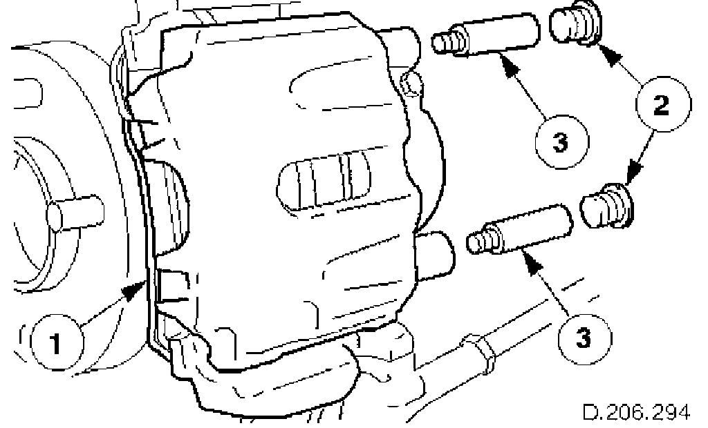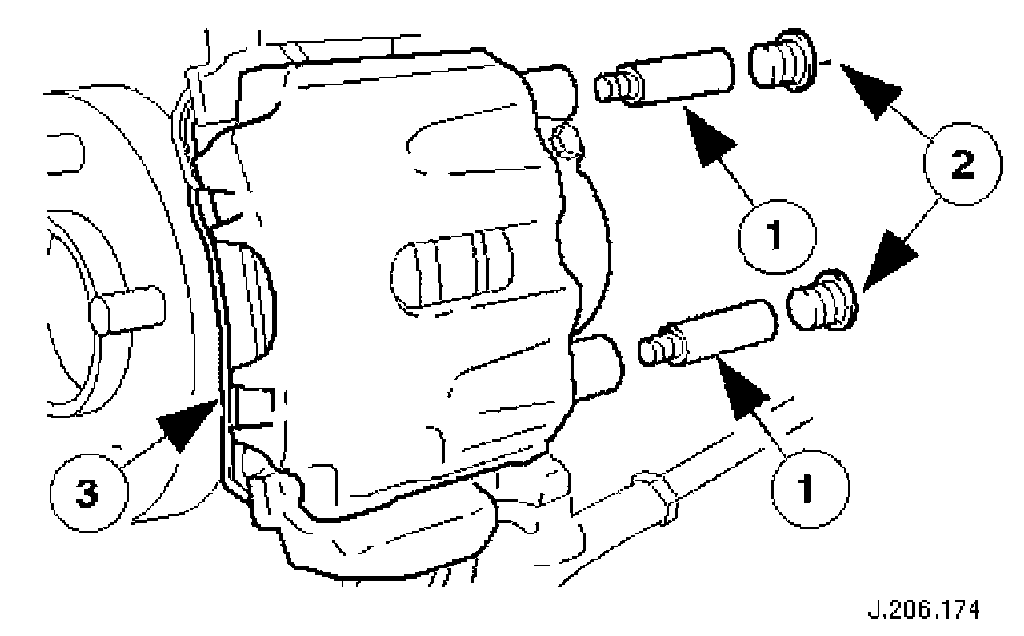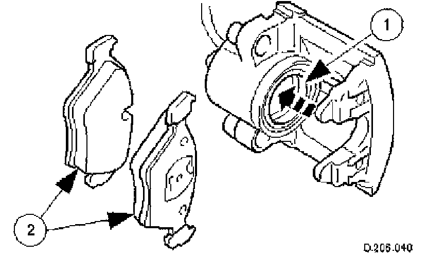 1. CAUTION: Retracting the caliper piston may cause the fluid reservoir to over-flow. Remove brake fluid spillage immediately from paint work, with clean water.