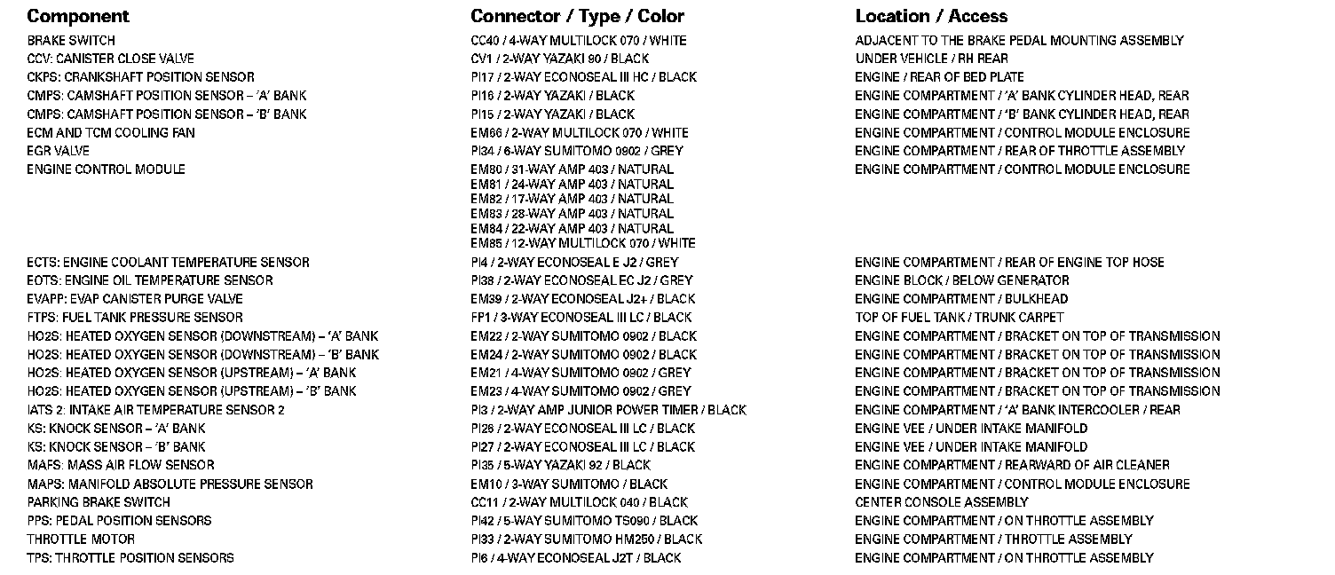 Refer to Vehicle / Locations for detailed information and illustrations regarding the location and identification of harnesses, relays, grounds and control modules. Locations