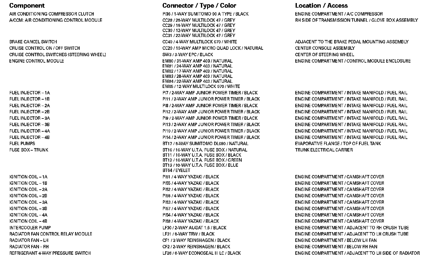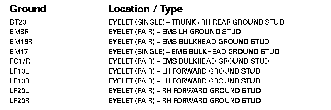 Refer to Vehicle / Locations for detailed information and illustrations regarding the location and identification of harnesses, relays, grounds and control modules. Locations