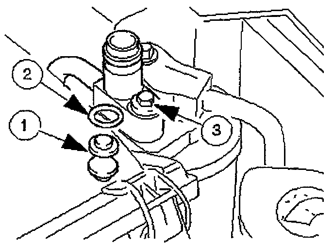 Remove the bolt, which secures the condenser jump hose and disconnect the hose.