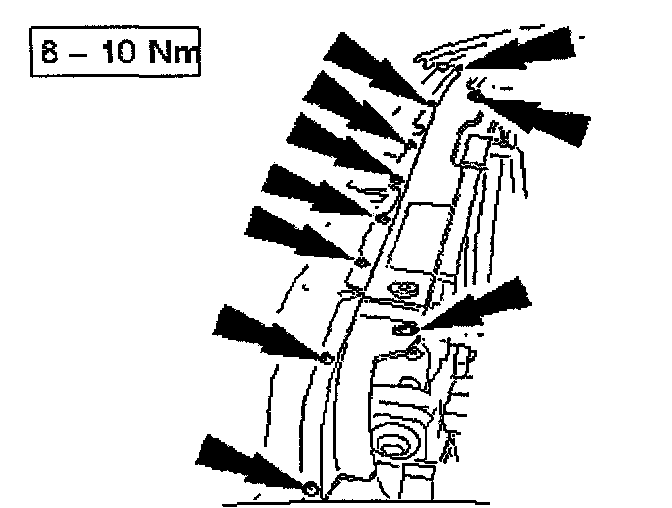 11. Tighten the ten bolts, which secure the radiator top panel.