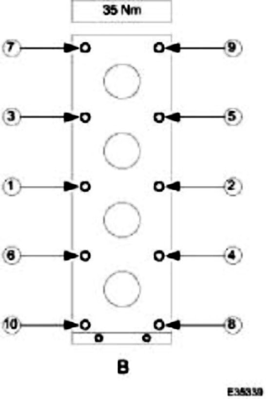 6. Stage 2 - tighten all M10 bolts in sequence, to 35 Nm.