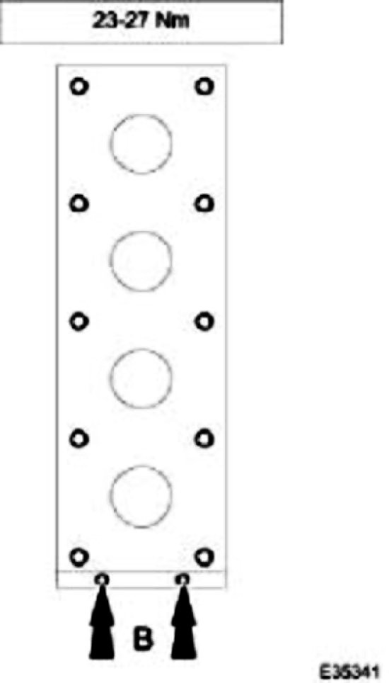 9. Stage 5 - tighten the two M8 bolts at the front of the cylinder head to 23-27 Nm.