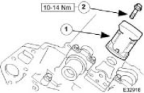 Install the two bolts which secure the tensioner and tighten to 10-14 Nm.