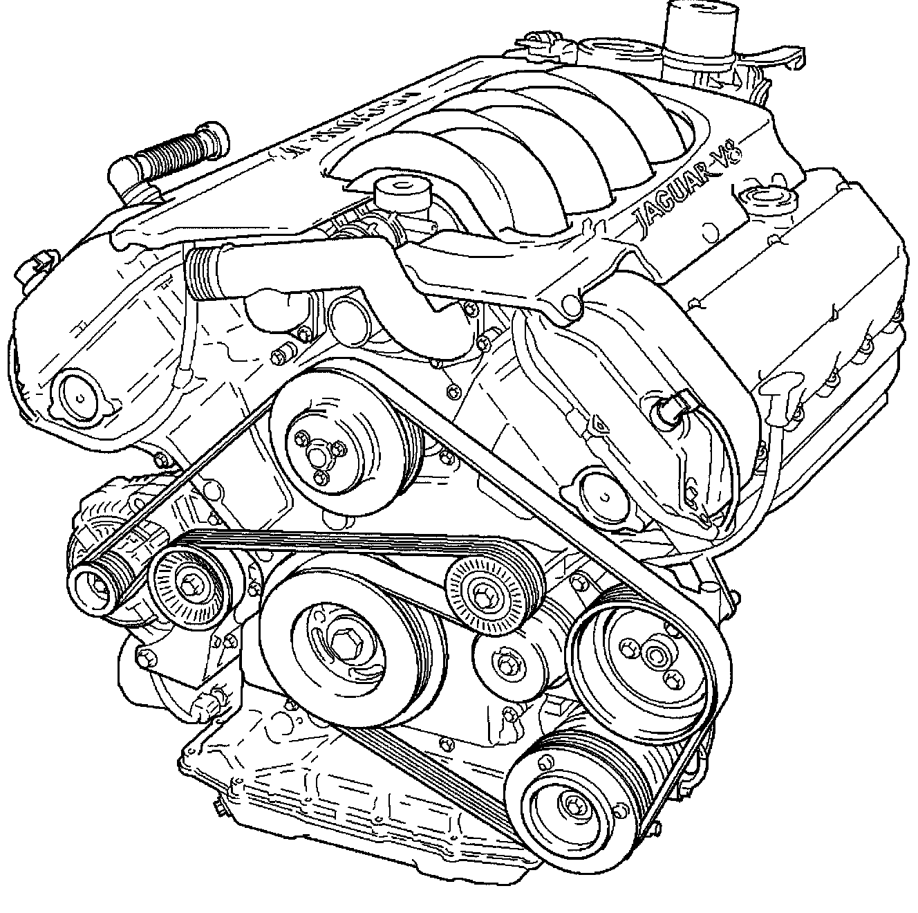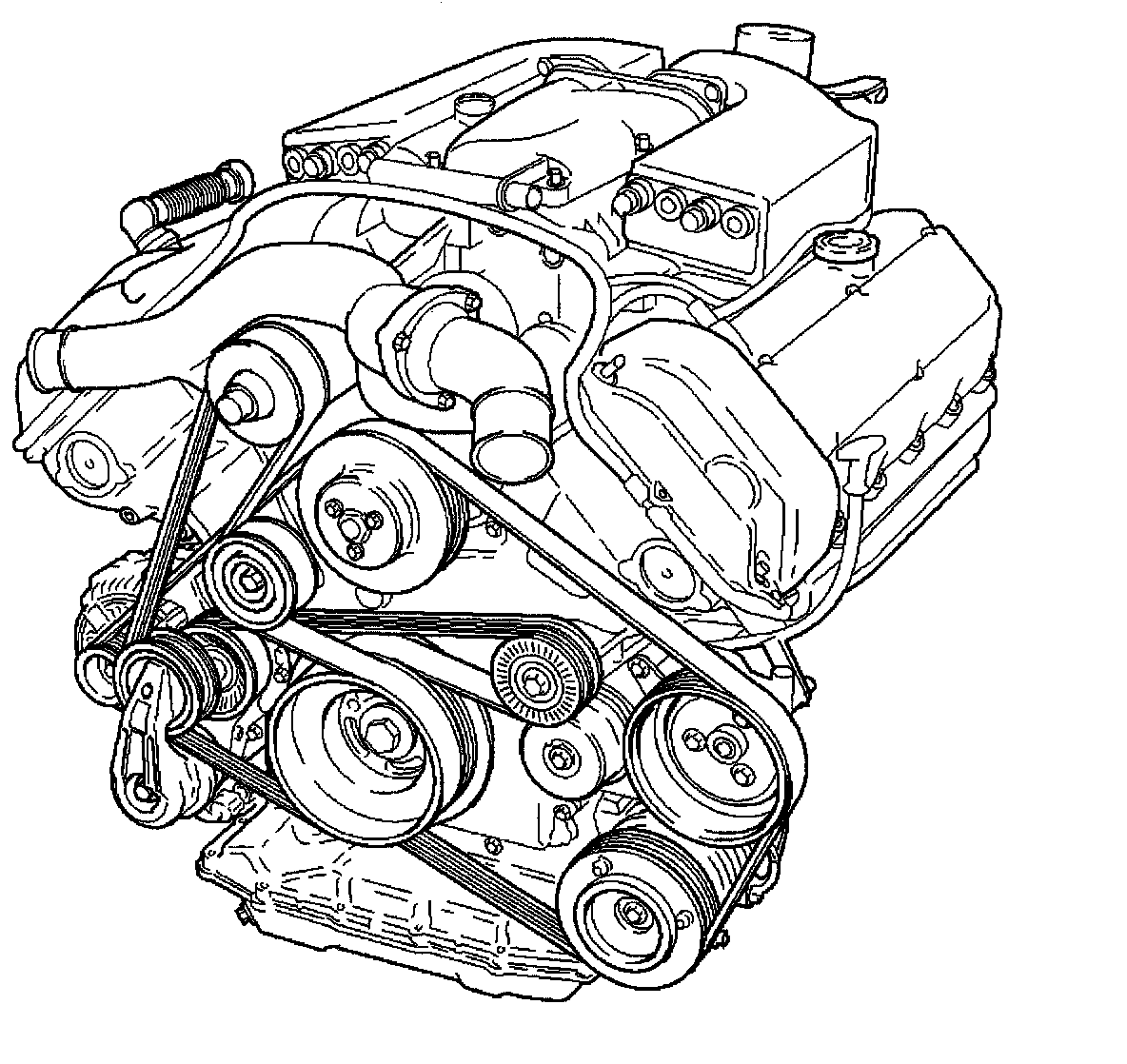 A single, seven ribbed vee belt drives the front end accessories on all versions of the engine.