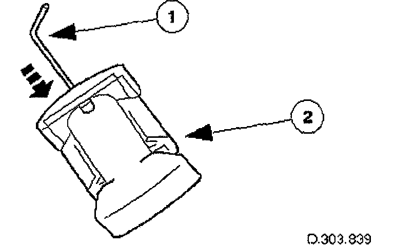 Insert a thin rigid wire through the hole in the end of the tensioner piston to displace the ball from the non-return valve seat.