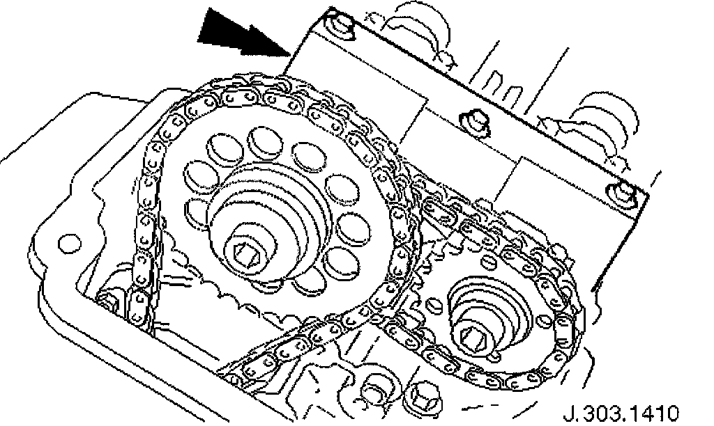 Position the cam sprocket, chain and tensioner assembly into position and locate the sprocket onto the camshaft spigot.