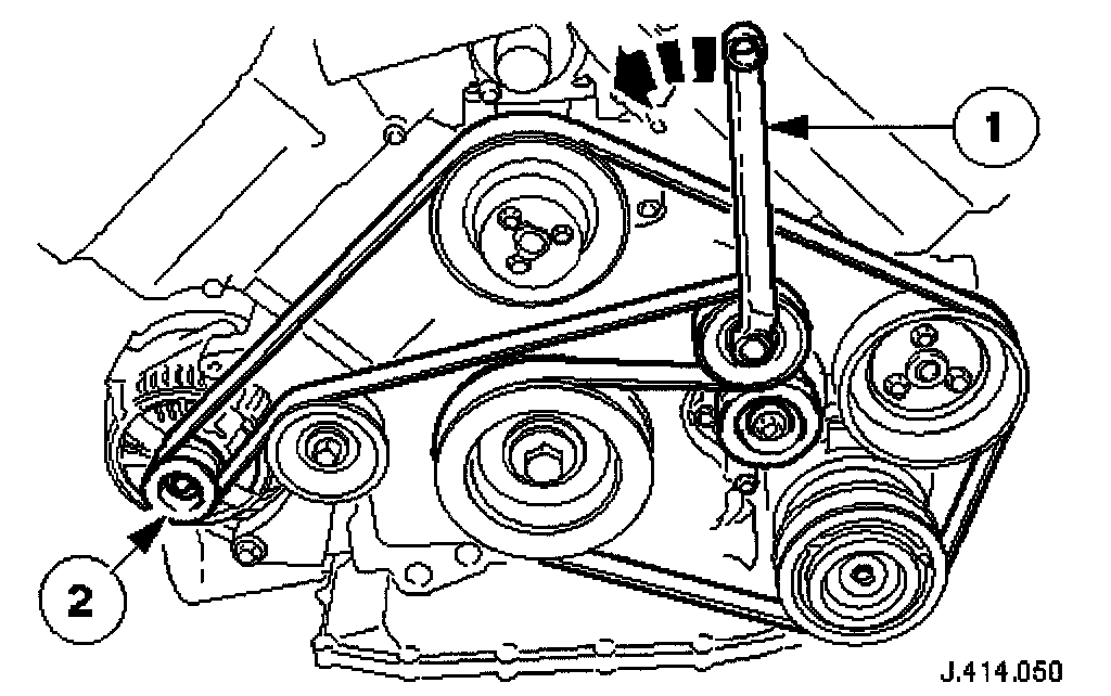 Use a spanner e.g. Churchill JD-230 or Snap On XDHM 1415, on the center bolt of the belt tensioner idler pulley, to turn the adjuster assembly to the left against spring tension.