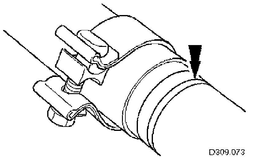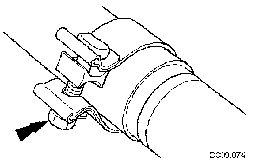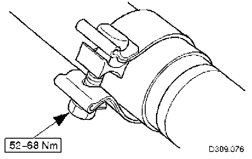 5. Tighten the securing clamp, intermediate muffler to rear muffler.
