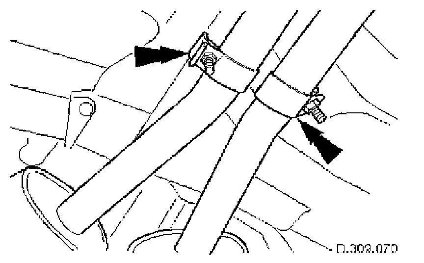 - Slacken the securing clamp, front muffler to intermediate muffler and separate the intermediate muffler from the front muffler.