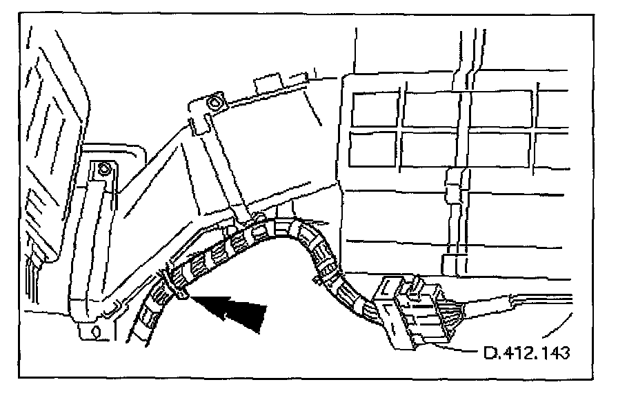 13. Cut cable tie which secures console harness to RH blower duct.