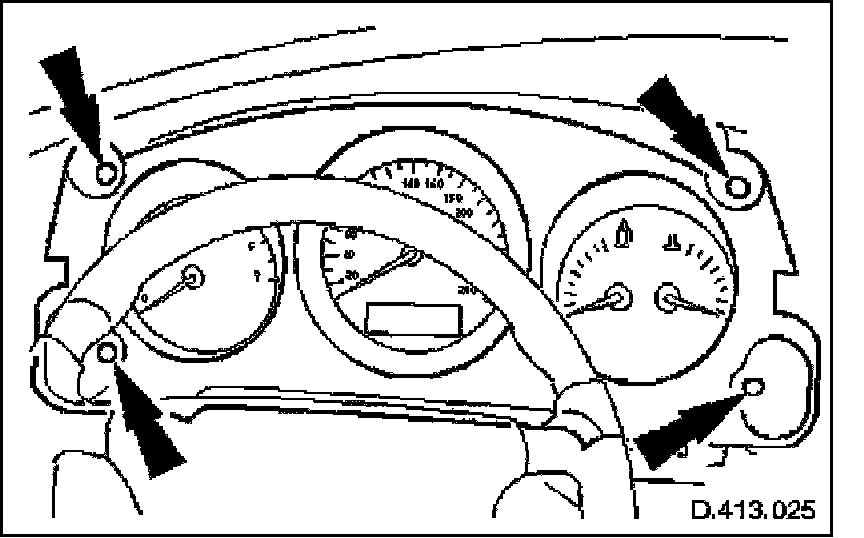 8. Slacken and remove four screws securing major gauge module/surround to fascia and withdraw surround.