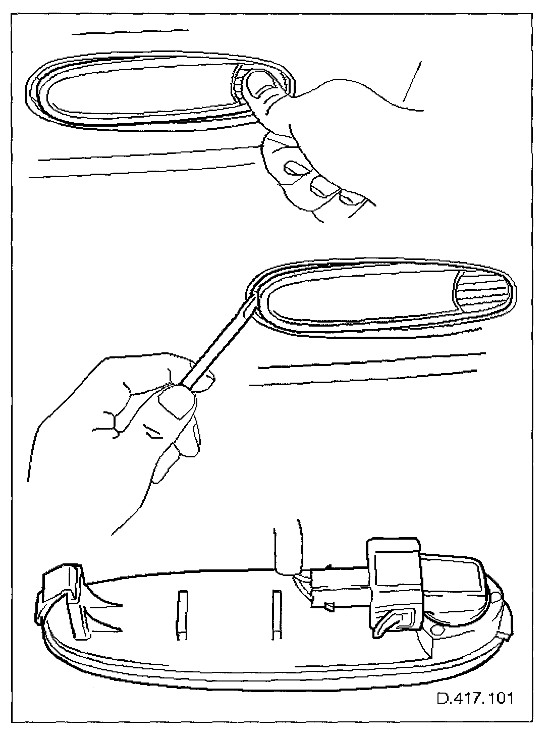 - Apply gentle thumb pressure to front end of lamp lens.