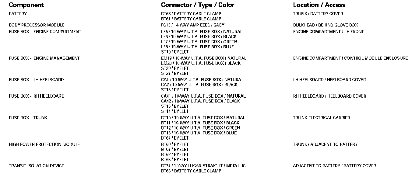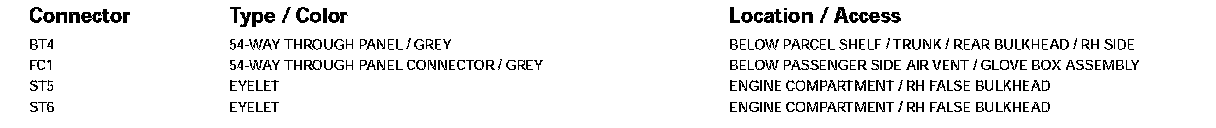 Refer to Vehicle / Locations for detailed information and illustrations regarding the location and identification of harnesses, relays, grounds and control modules. Locations