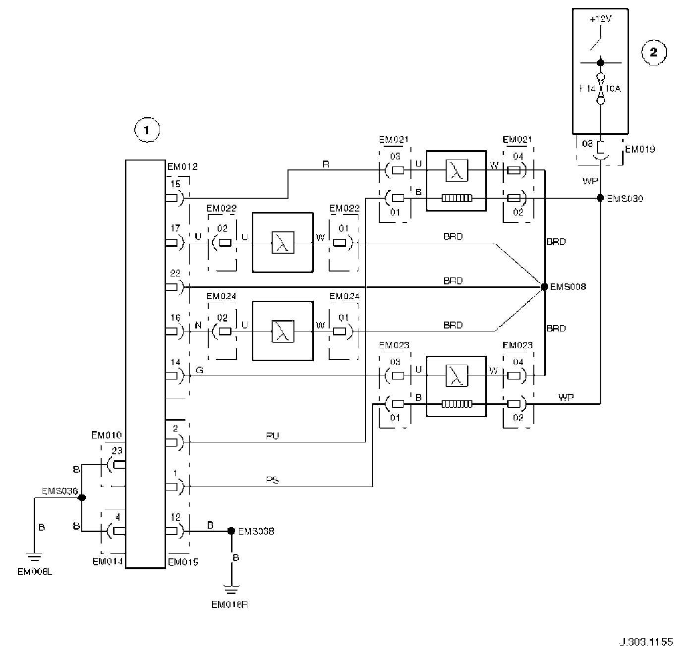 Circuit Diagram, O2 Sensors / ECM