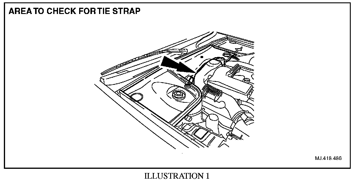 At the next service opportunity, check all XJR supercharged vehicles listed in the VIN list for the tie strap. If no tie strap is present, install a new tie strap to eliminate this concern.