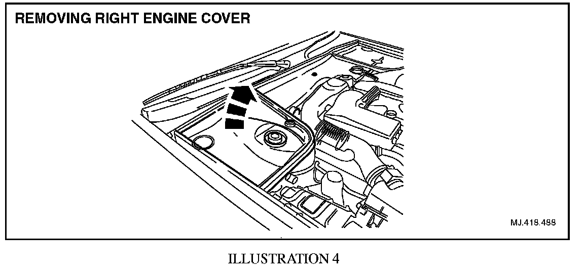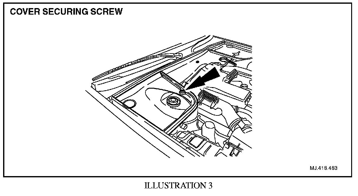 2. Undo and remove the engine compartment right hand cover securing screw (Illustration 3).