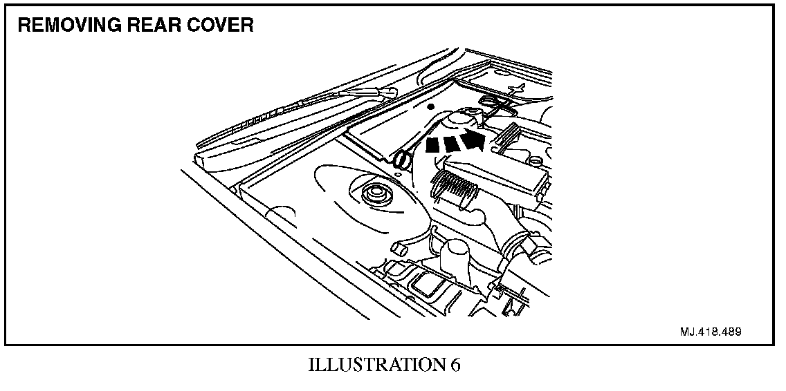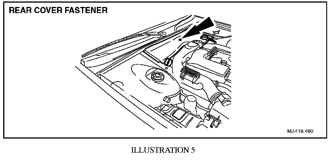 4. Remove the engine compartment rear cover quarter turn fastener (Illustration 5).
