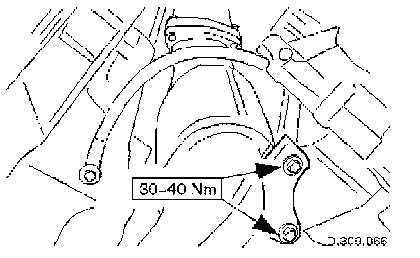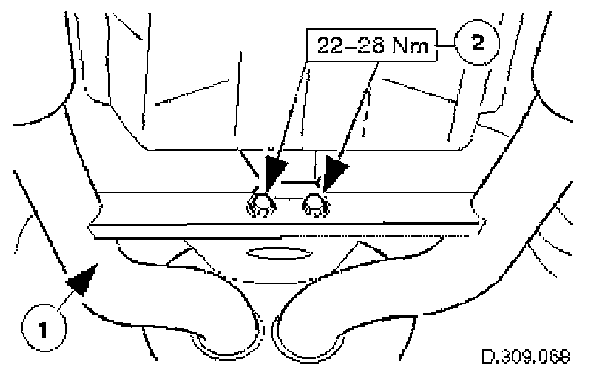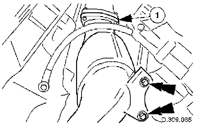 - Fit, but do not fully tighten, the mounting bracket securing bolts. (Leave loose until the nuts securing the downpipe to the exhaust manifold are fitted.)