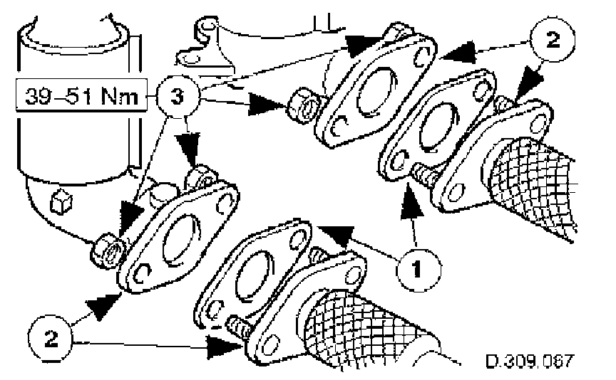 2. Fit a new gasket to the manifold mating flange on the downpipe.