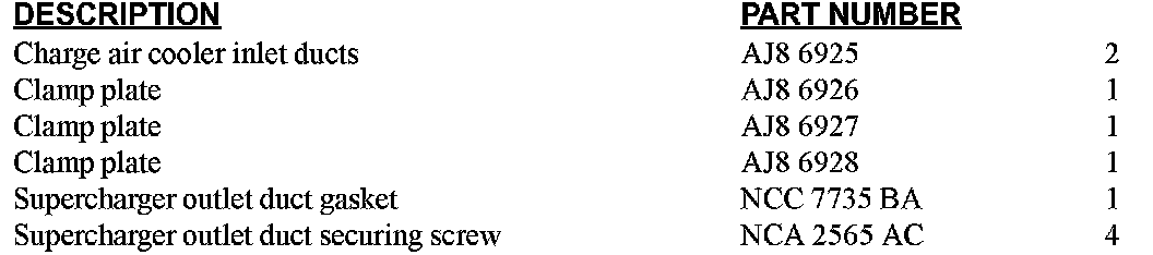 On a customer complaint basis only, replace the charge air cooler inlet ducts and clamp plates with the revised parts listed below.