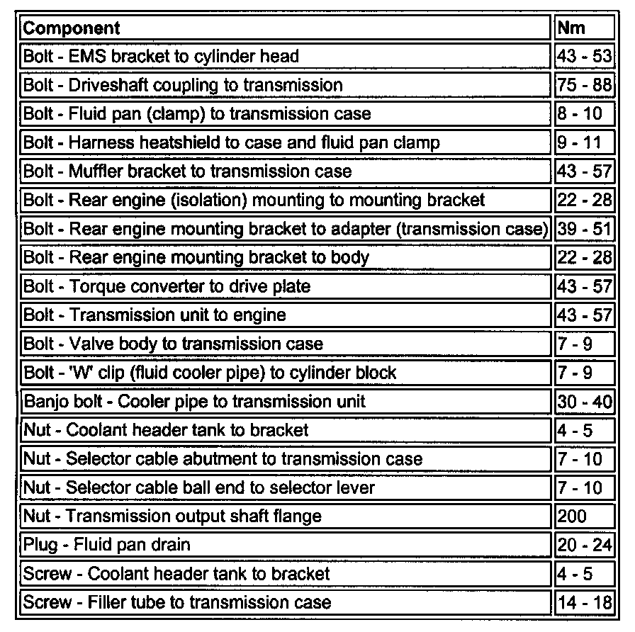 Torques - Automatic Transmission (Supercharged Vehicles):