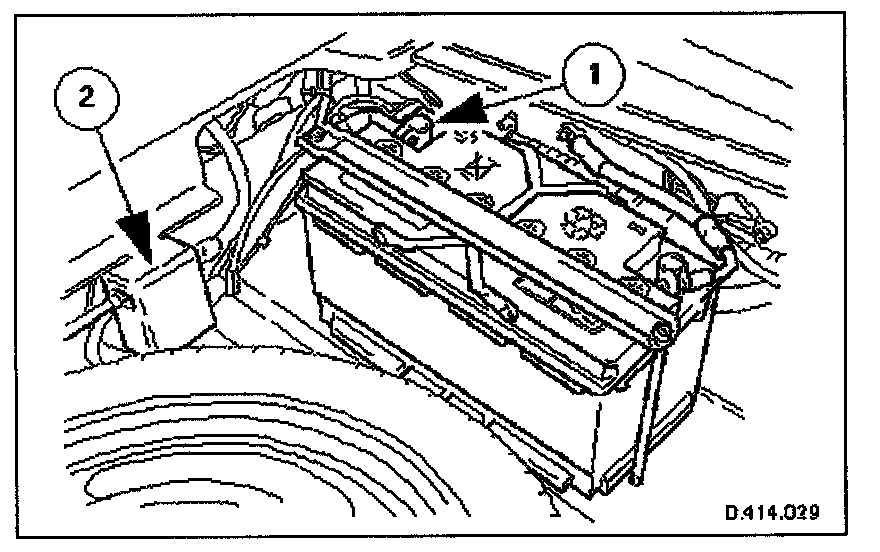 1. Remove the luggage compartment floor panel (when standard size spare wheel is supplied) and the cover from the battery.