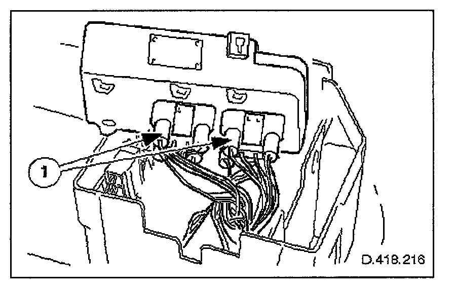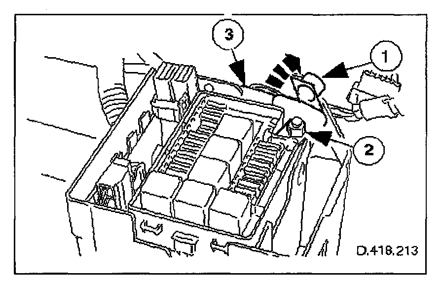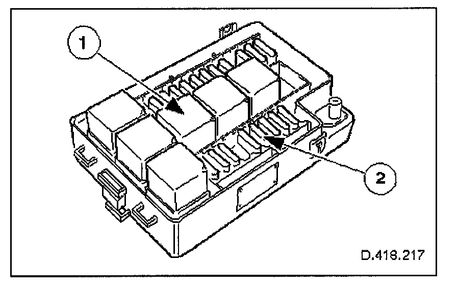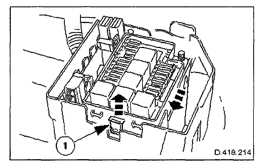 - Release fuse box from mounting panel by displacement towards spare wheel.