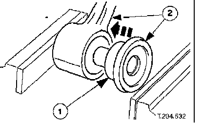 1. Using a drift, remove thrust washer and spacer tube from each inner and outer half-bush.