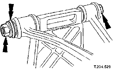 15. Remove upper wishbone fulcrum nut and shaft and withdraw wishbone from crossbeam.