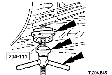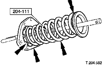 Remove spring assembly and Special Tool 204-111 from suspension turret.