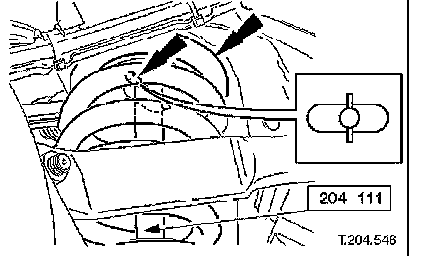^ Install spring pan/spring assembly and Special Tool 204-111 in suspension turret.