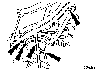 ^ Remove wishbone rear eccentric bolt and nut.