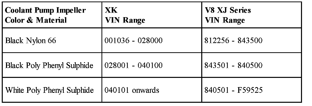 On replacement engines, it is not necessary to replace the coolant pump, unless the coolant pump being transferred has one of the part numbers listed above.