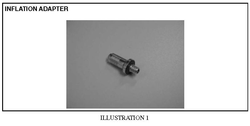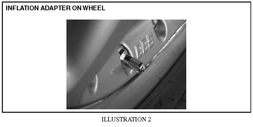 To check inflation pressure, remove the dust cap and screw in the inflation adapter (Illustration 2). After checking/inflating, remove the adapter and store it in the vehicle. Screw in the dust cap.