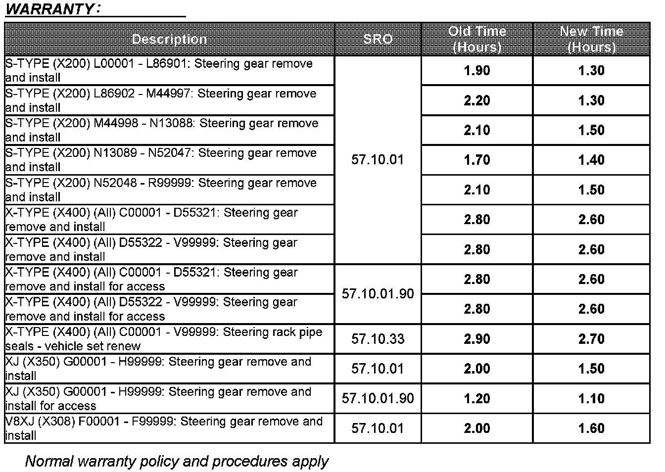 Revised Workshop Procedure - Remove/Install Steering Gear