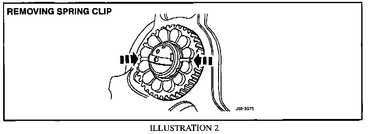 2. Remove the rotor-nut spring clip, by squeezing the two legs together until the prongs are released from the hub retaining holes.
