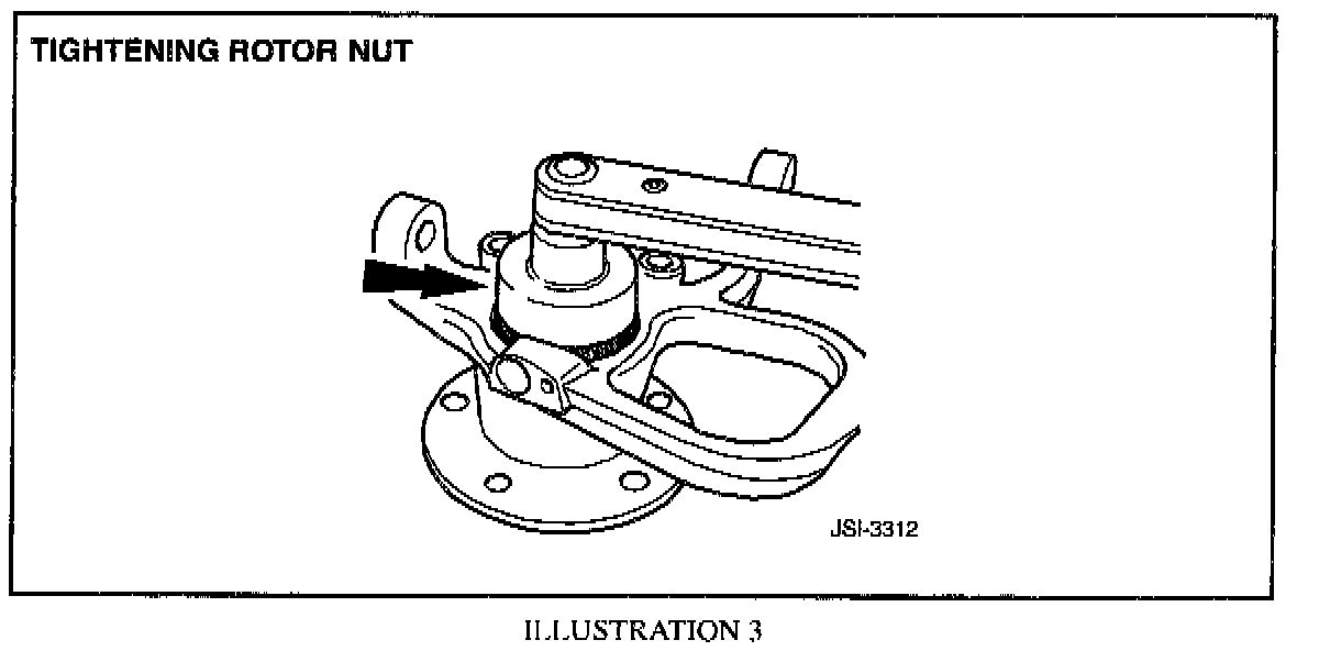 4. It may be necessary to tighten the rotor-nut further, to engage the spring clip into the castellated slots of the rotor-nut.