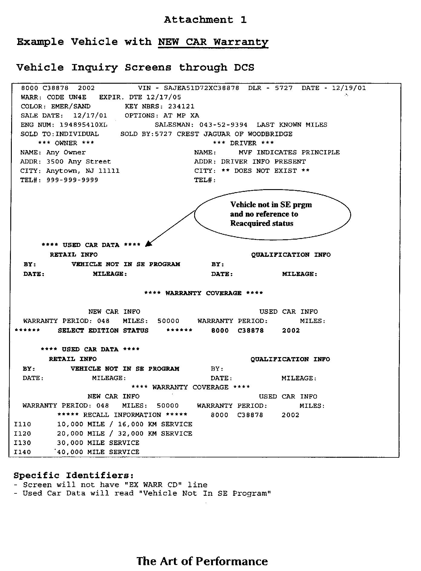 Attachment 1: New Car Warranty (no Pre-owned warranty coverage)