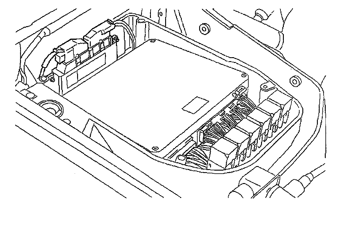 The TCM is located in the same housing as the engine control module (ECM) and is accessed in the same manner. With the two connectors unplugged the TCM may be withdrawn, complete with mounting bracket. The mounting bracket is secured to the TCM by 2 locknuts.