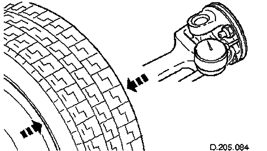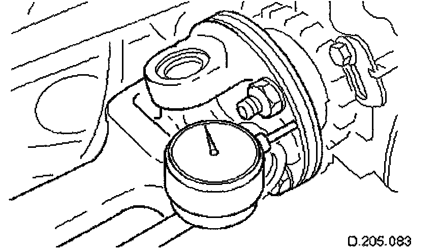 3. Mount a dial test indicator (DTI) to the differential housing with the probe resting on the axle shaft flange (the DTI probe must be parallel to the output shaft center line & NOT the axle shaft)