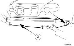 - With assistance, slide bumper assembly rearwards off guide blocks, holding it clear of the exhaust trims.