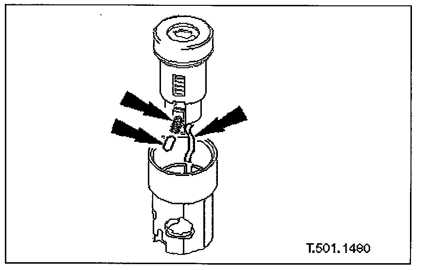 - Position operating arm at housing, locate bias spring upper tang on arm pillar and seat arm with spring tensioned.