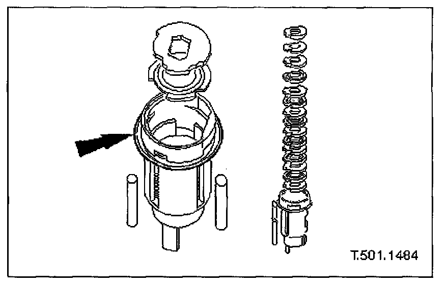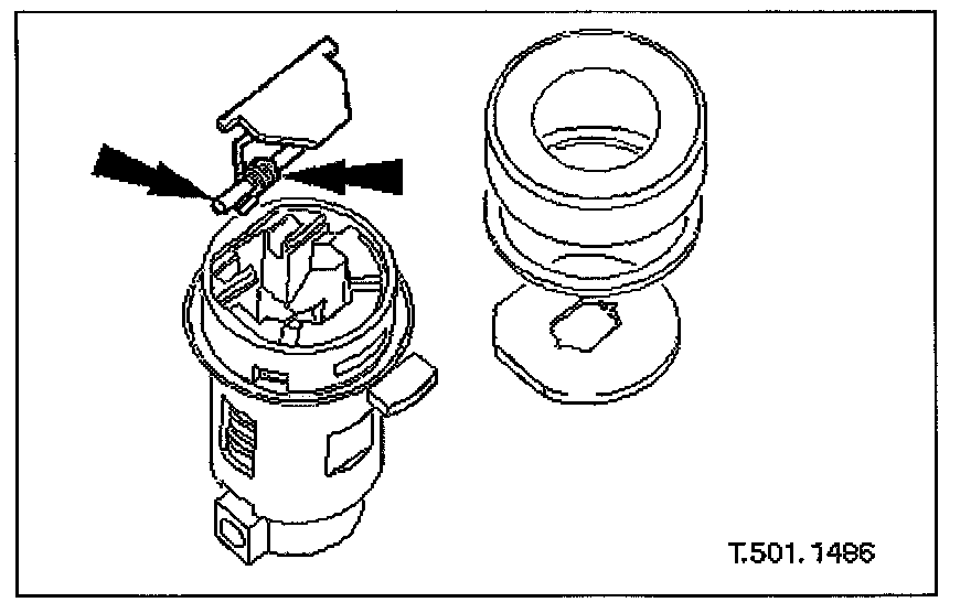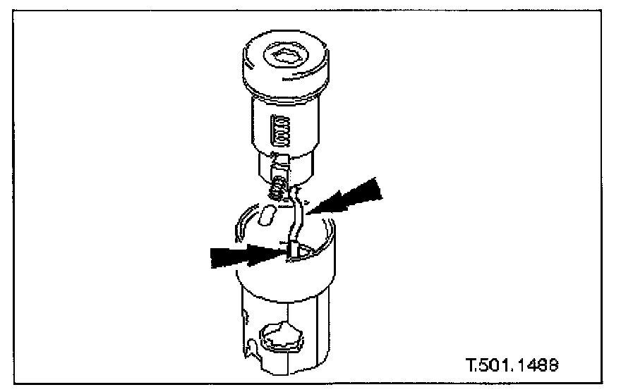 7. Remove circlip securing operating arm to lock barrel and remove operating arm and bias spring from barrel.