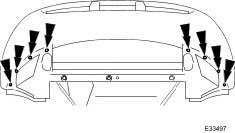 - Remove and discard the three fir tree fasteners securing bumper cover to body front upper cross-member.