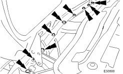- Install six cover to upper cross-member securing bolts.