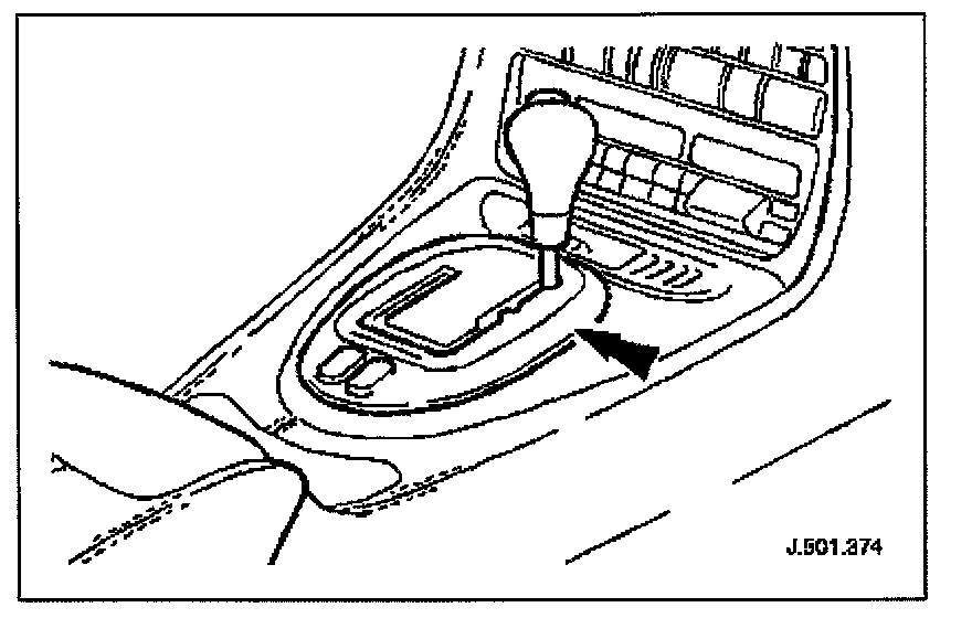 2. Depress brake pedal, move gear selector to position N and turn ignition key to O.
