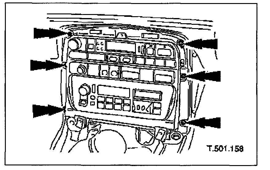 4. Slacken and remove the six radio console securing screws and partially withdraw the console for access.